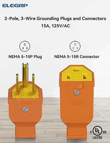 ✅【UL Certificated】 ELEGRP Straight Blade Plugs and Connectors are UL certificated (File E355464), the quality is guaranteed to help you replace or repair the power problems of plugs and sockets in your home and other household to ensure safety.