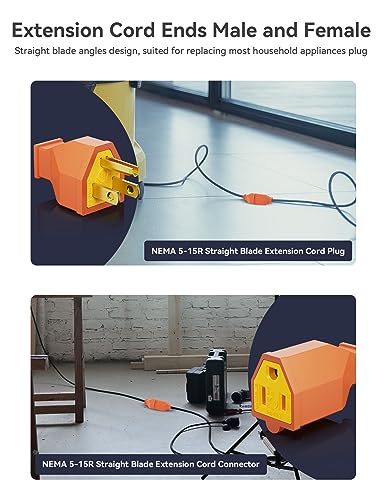 ✅【Extension Cord Replacement Ends】 Extension cord ends are about 15 amps, 125 volts, NEMA 5-15 rating, 2-pole 3-wire grounding type, 1875 watts, note: the current should not exceed 15 amps, suitable for most home daily uses.